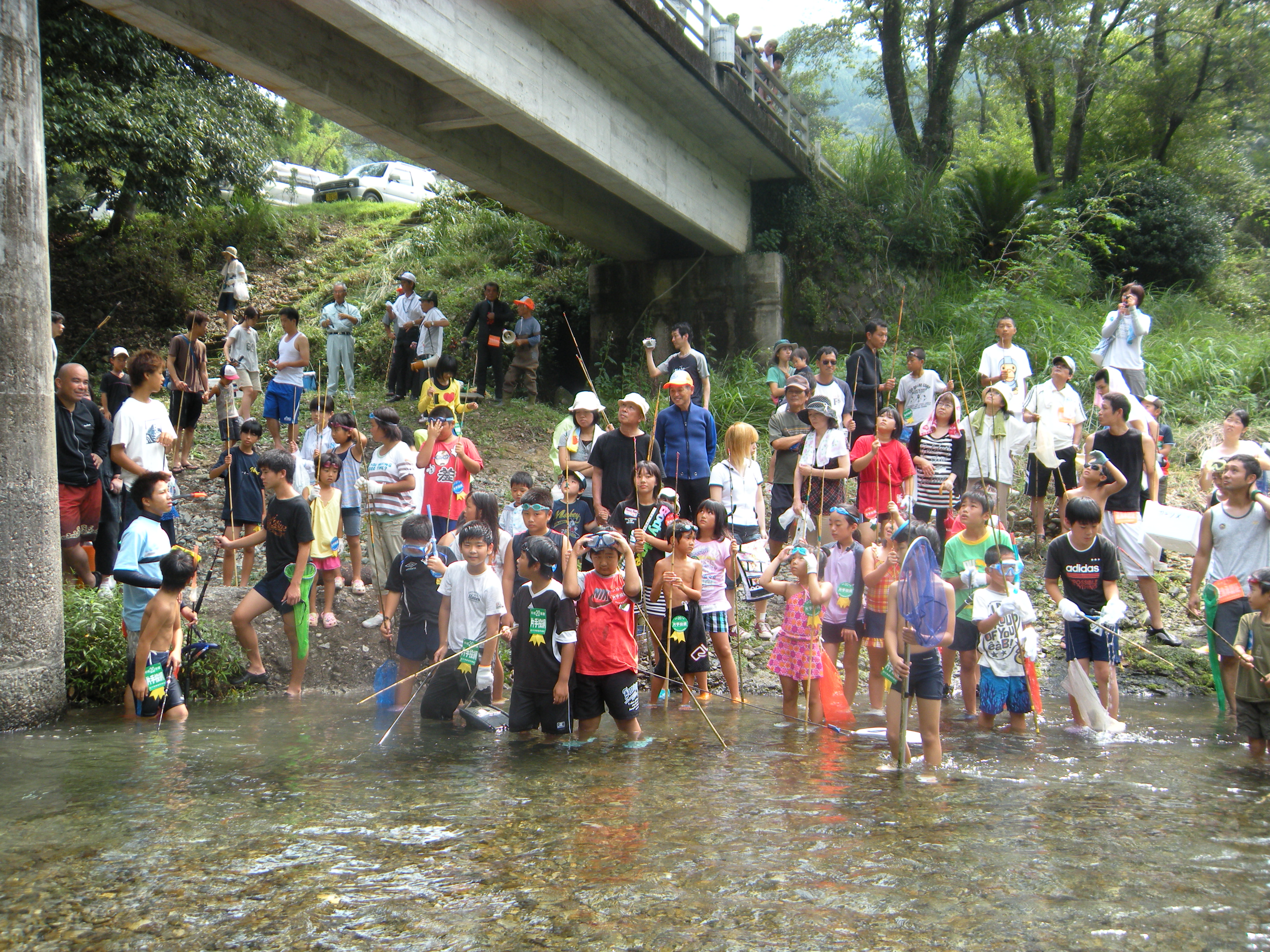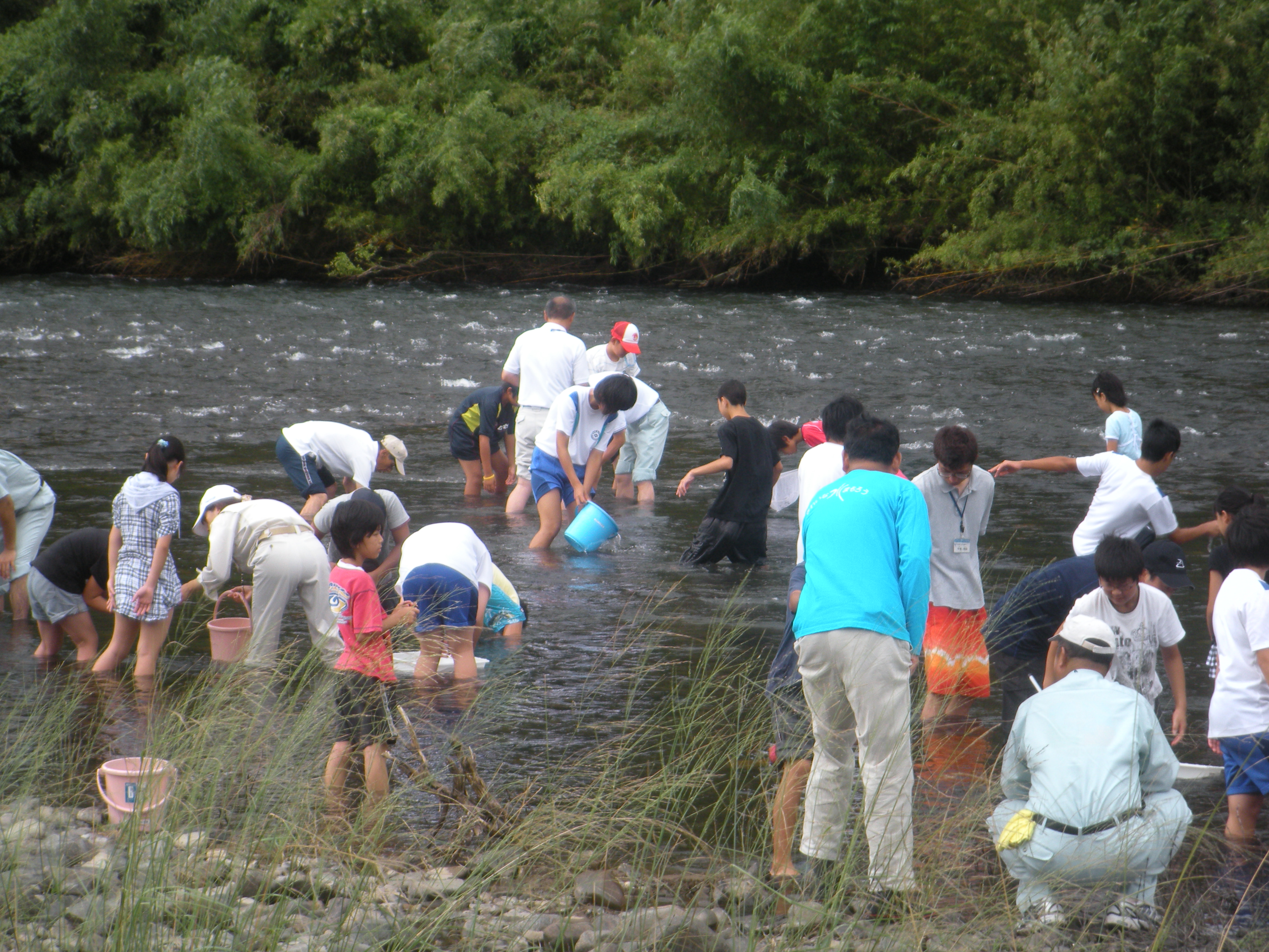 北川ダム湖環境整備推進協議会のすすめるダム湖環境保全の一環として、関係機関及び関係団体等が協力し、ダム湖上下流域の子ども達の交流により、それぞれの水辺の環境を理解することにより、北川の清流を守ろうとするものです。