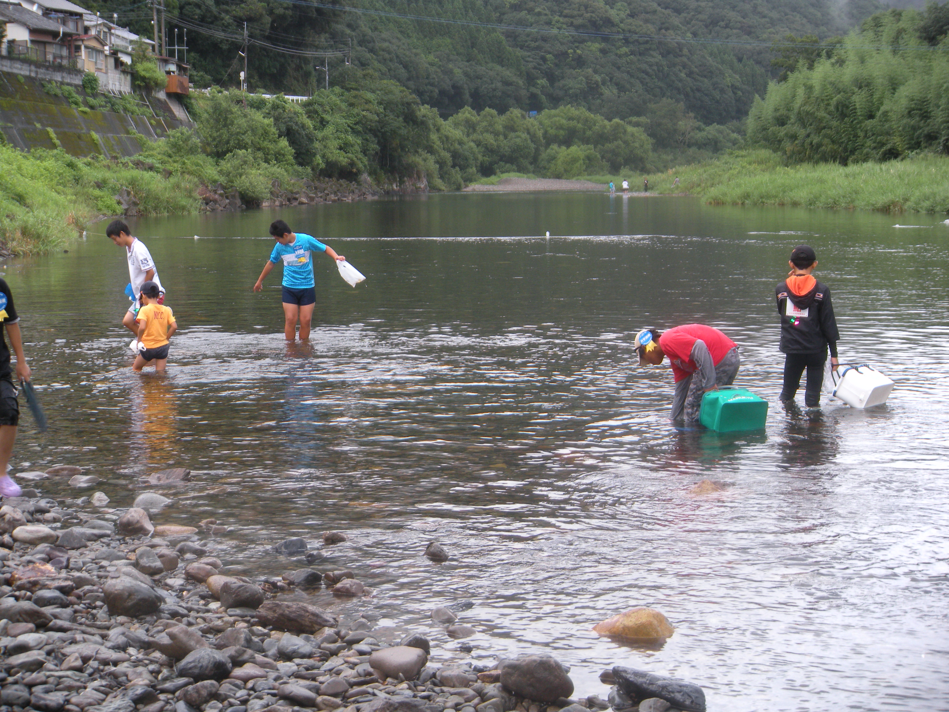 まずは、参加者全員で河川清掃しました。