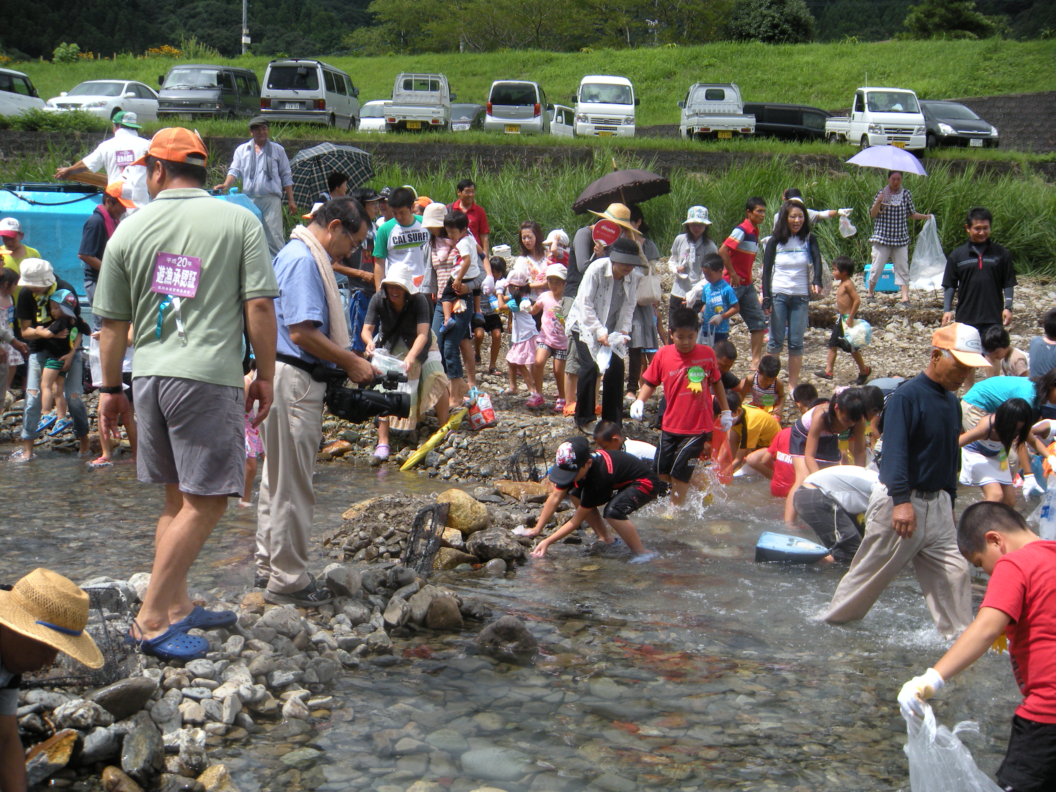 今から楽しみの マスの掴み取りを始めますが 多くの人たちが川と触れ合うことにより、自然の魅力や大切さを再認識していただき