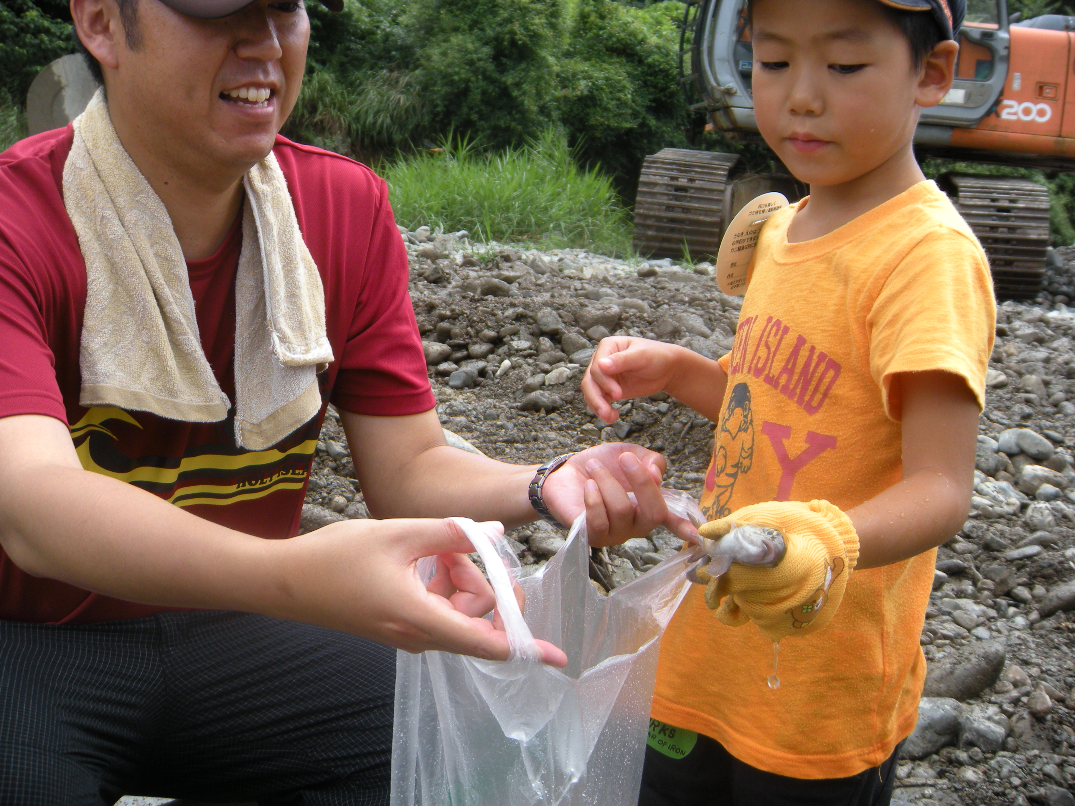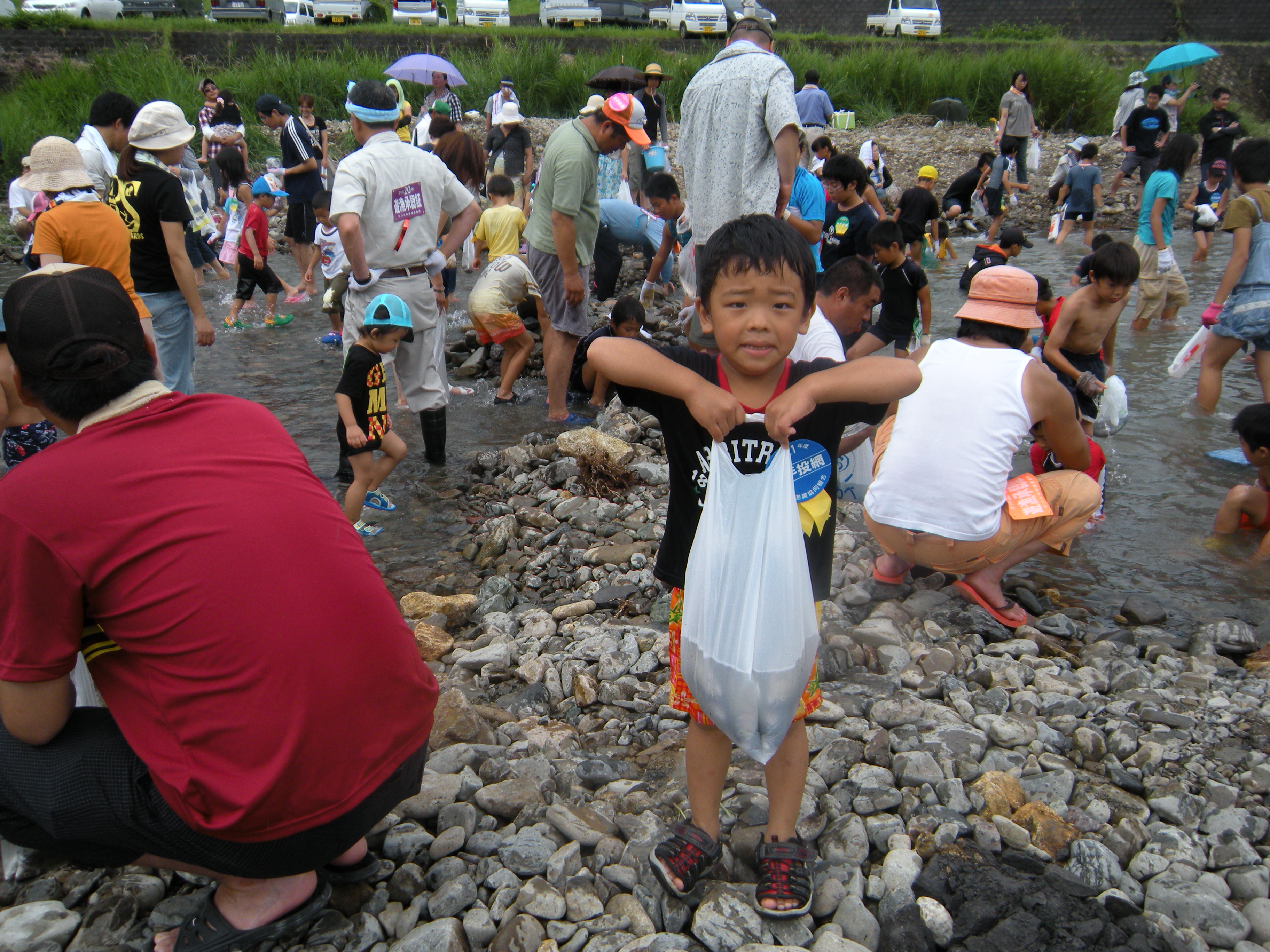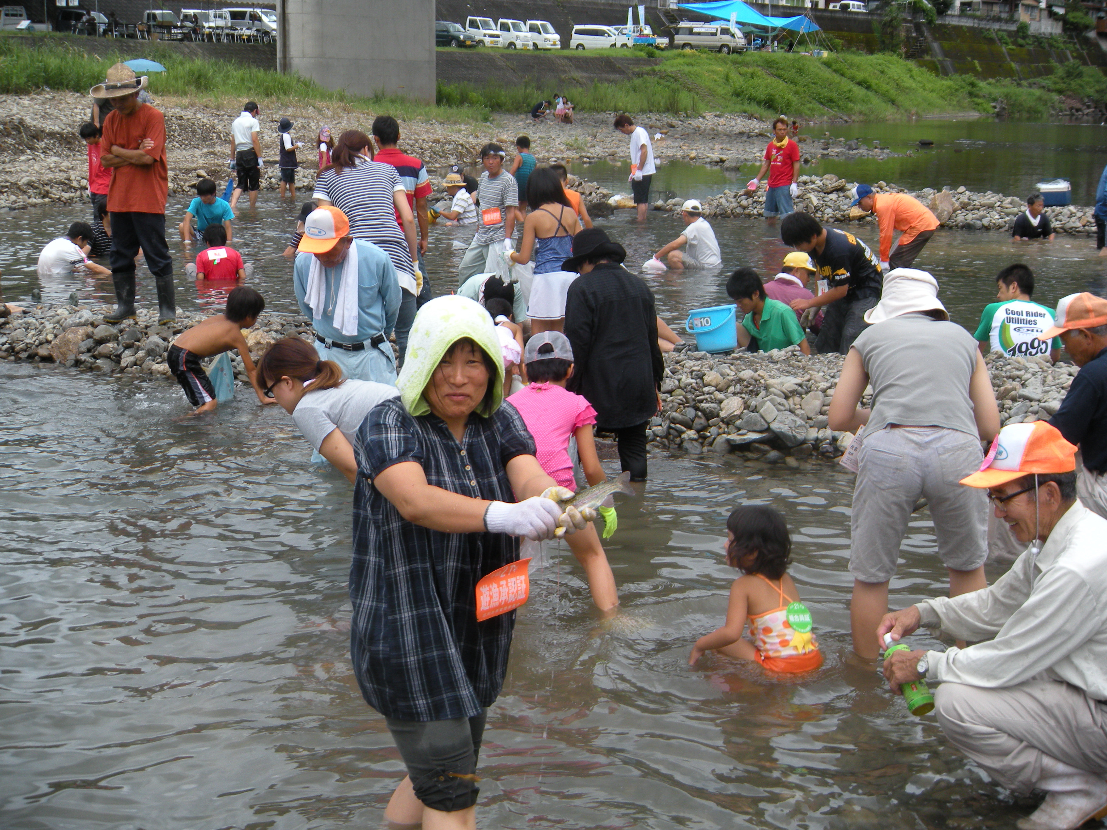 河川清掃 マスのつかみ捕り大会