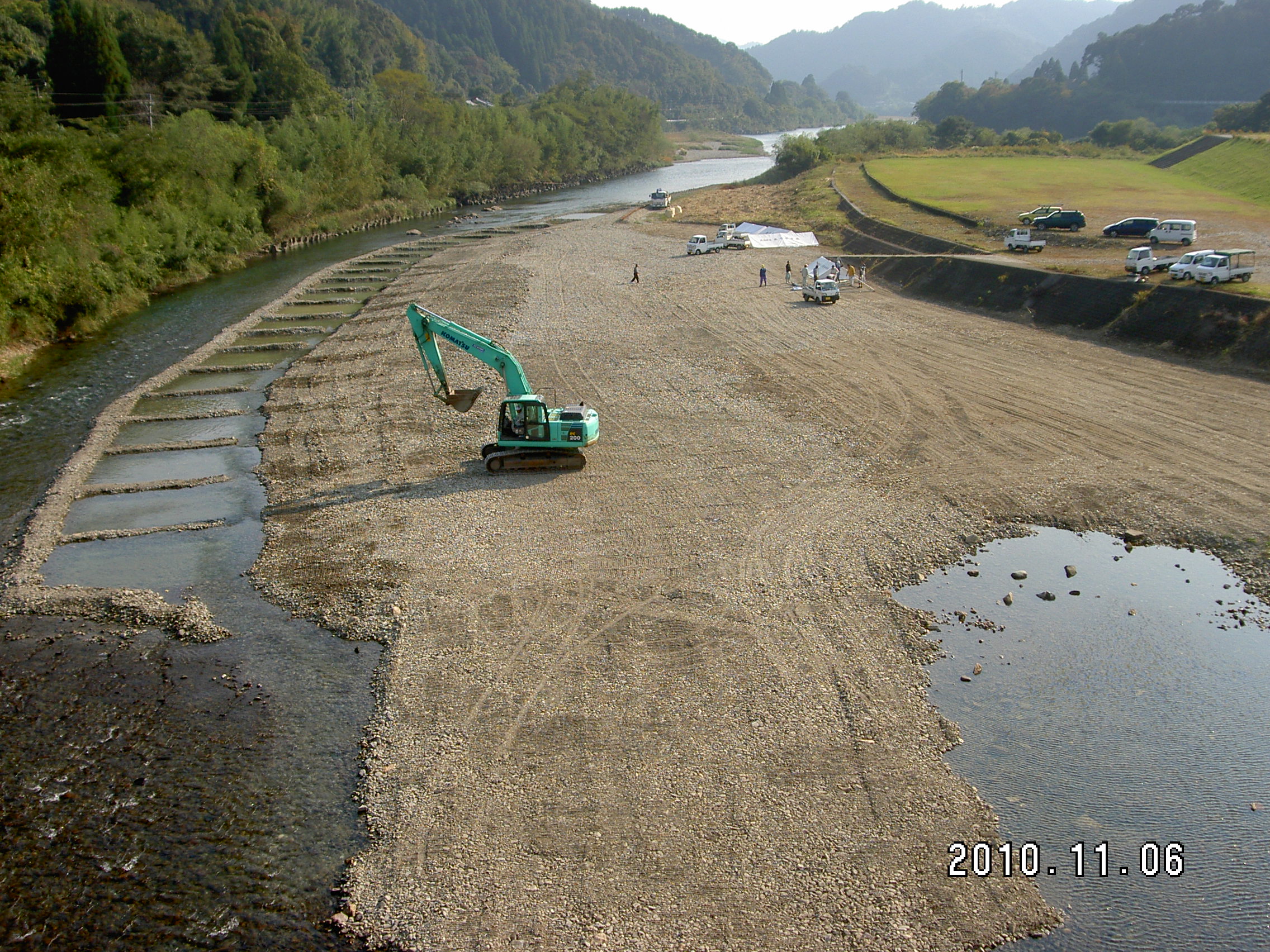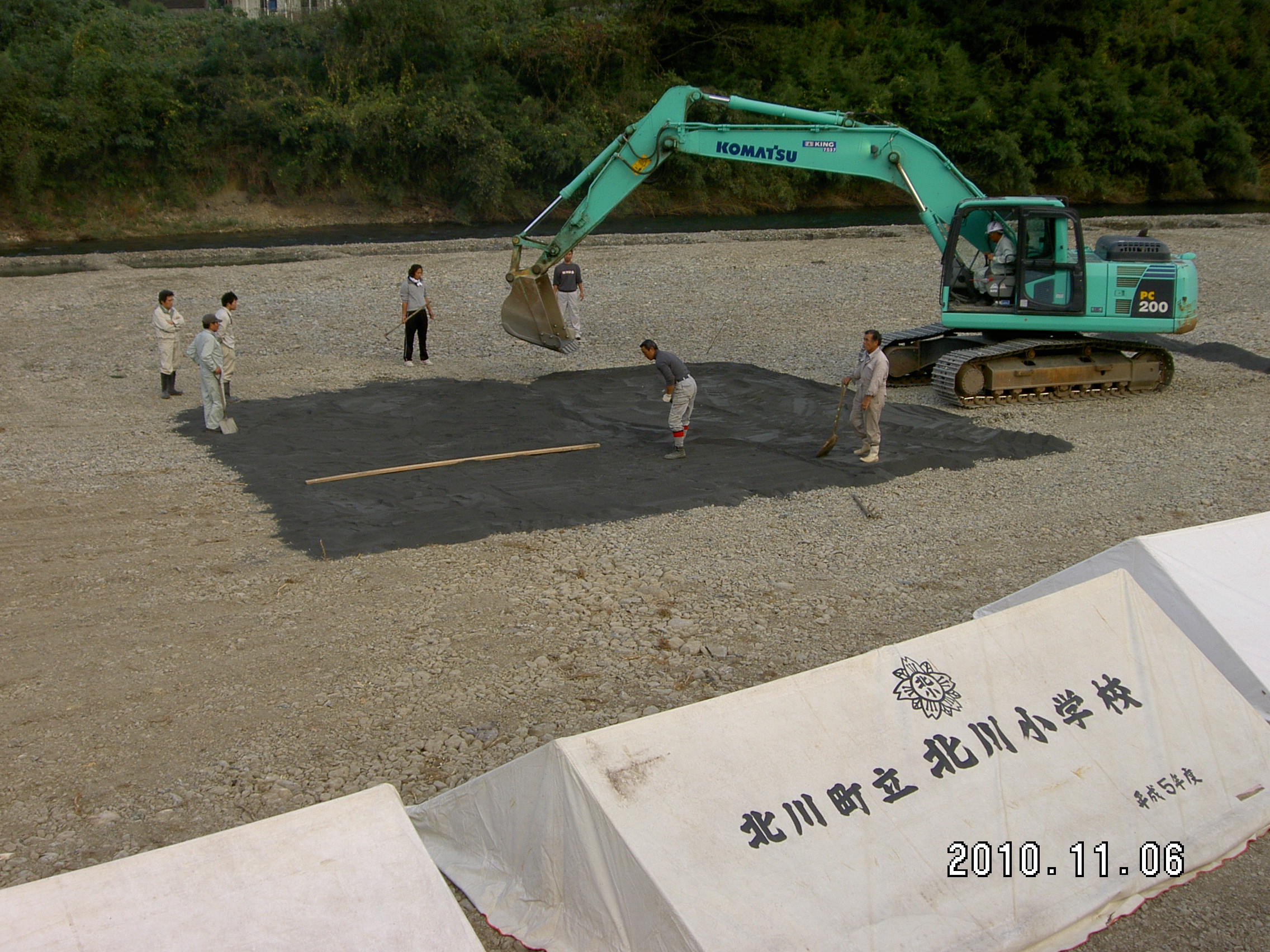 株式会社盛武組様、合名会社双葉建設様により、3日前より池造りが着々と進められました。