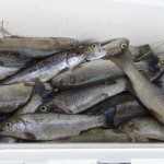 ぬるぬるすべるニジマスにみんな悪戦苦闘!!でもこつをつかんで最後にはクーラーいっぱいになりました♪