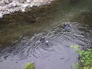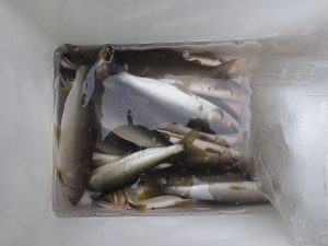 大分県企業局様による北川流域環境保全に係るあゆ放流業務として、特別区にアユを662kg放流していただきました。