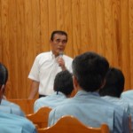 平成25年7月18日ほたるの宿において、大分県企業局の職員27名・延岡土木事務所の職員7名・市の職員5名の方々に、ダム操作による河川への影響についての勉強会が大分県企業局の依頼により、開かれました。